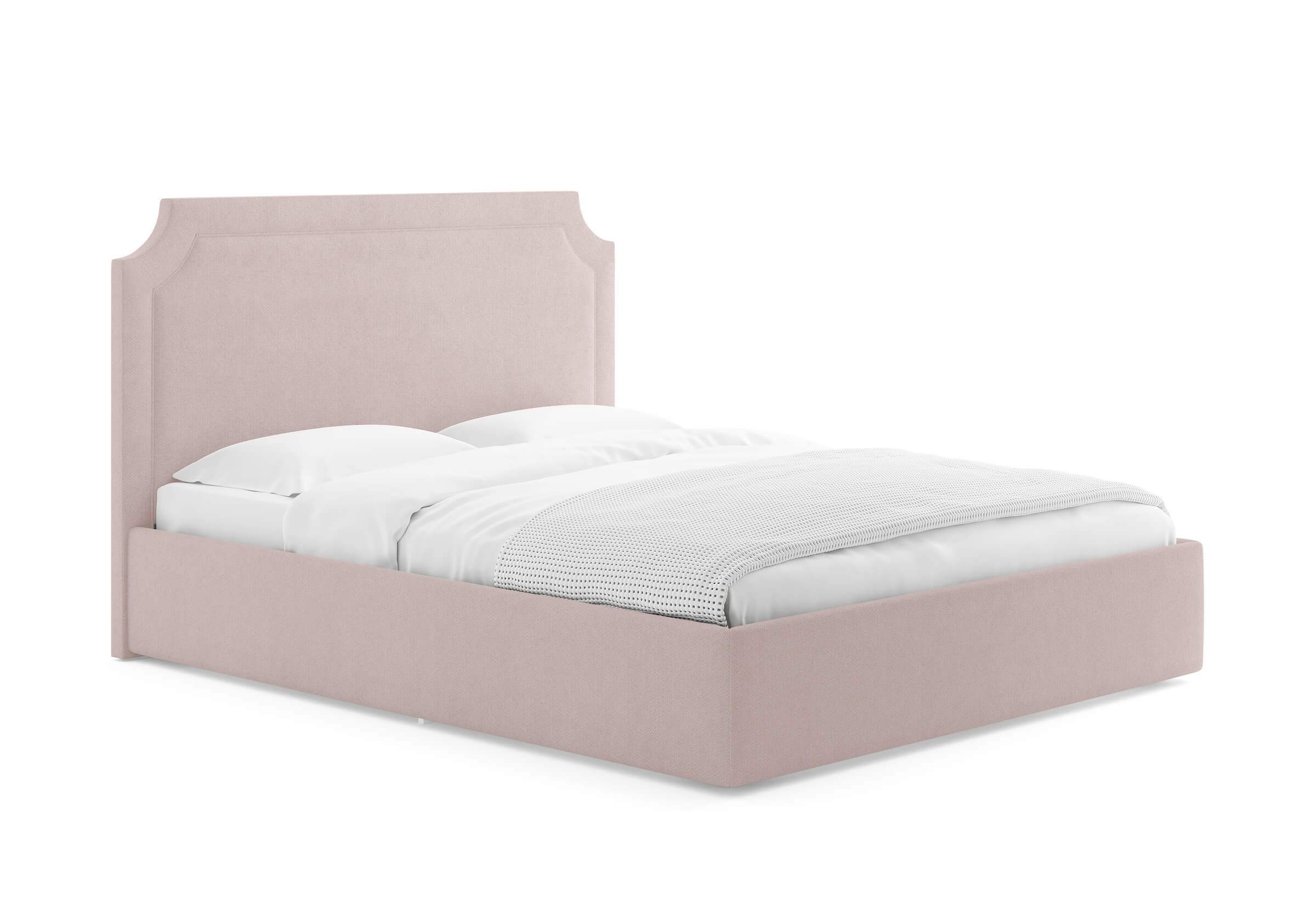 Изголовье выполнено в виде декоративной рамки с кантом. Изящные изгибы углов в классическом стиле придают кровати индивидуальность.