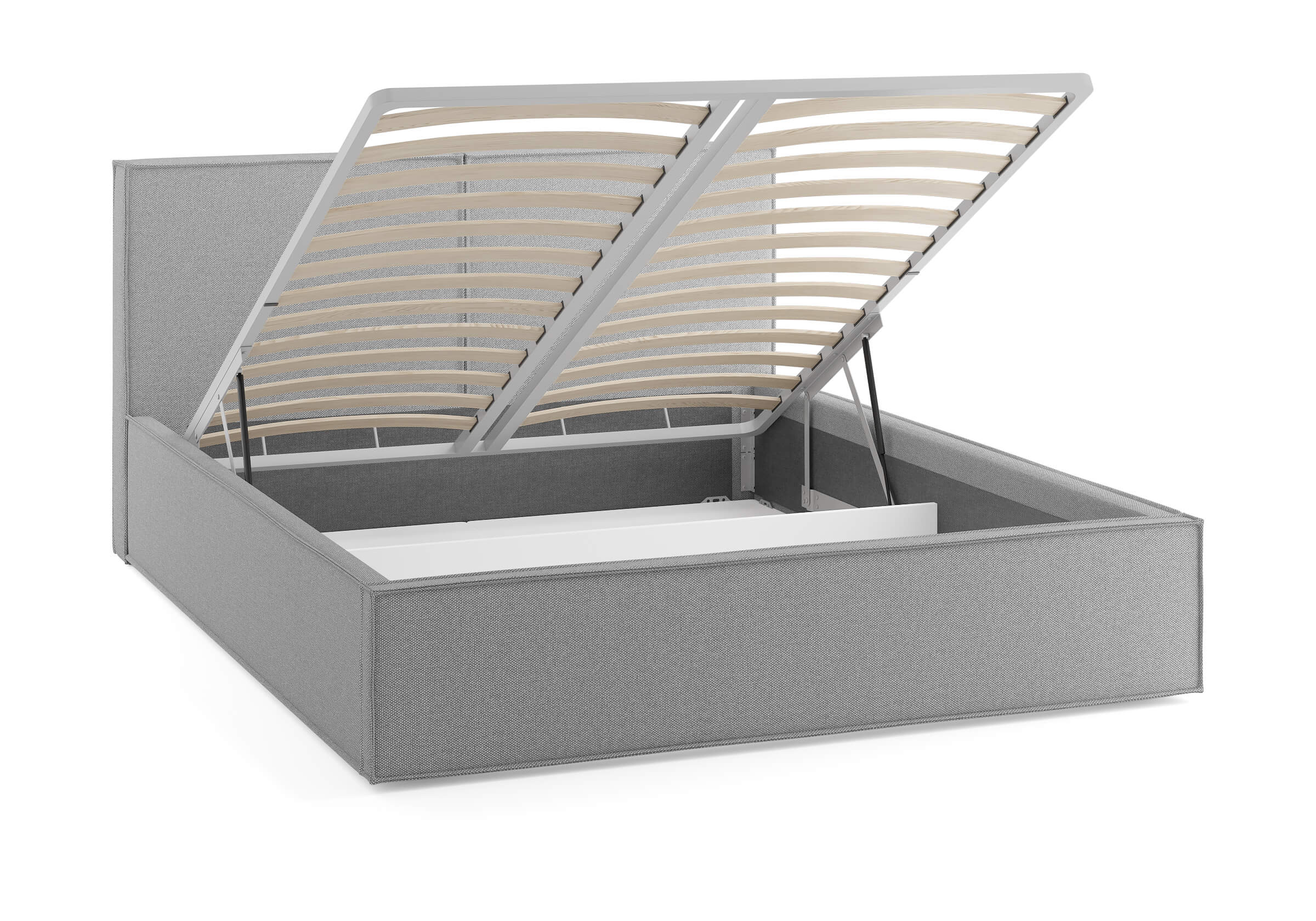 Возможна установка подъемного механизма с вместительным бельевым ящиком. Дно бельевого ящика легко сдвигается для обеспечения уборки под кроватью.